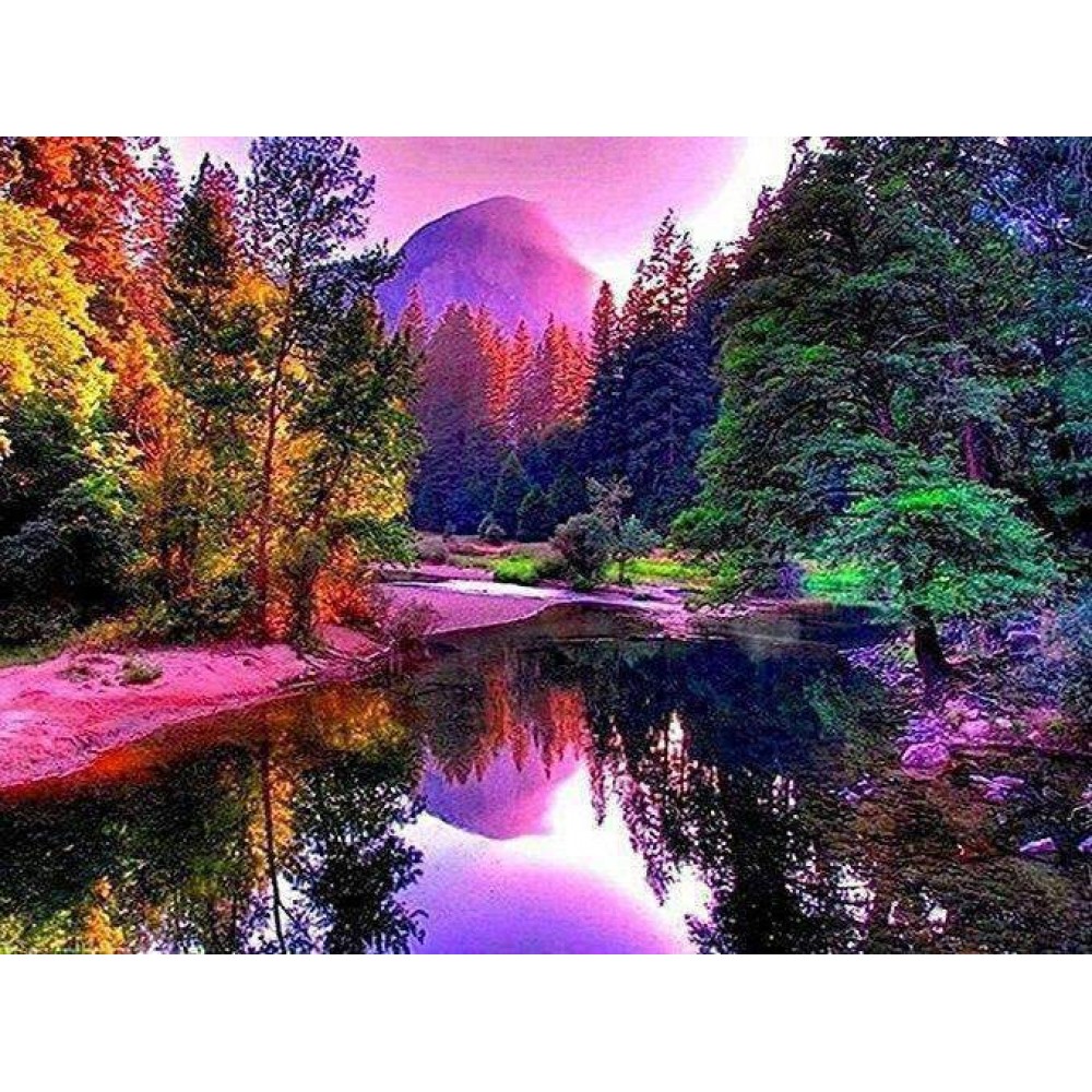 Kleurrijk Bos met Meer Diamond Painting