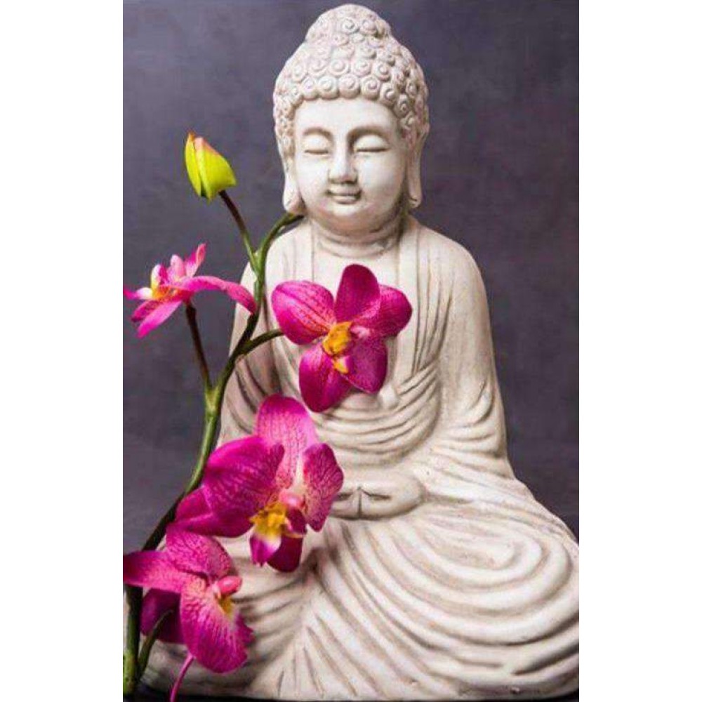 Buddha (Boeddha) Standbeeld Bloem Diamond Painting