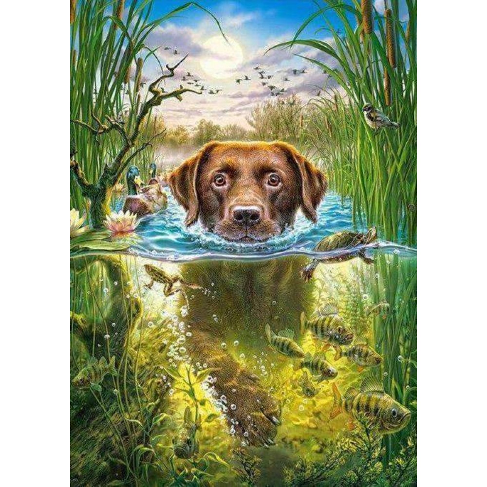 Hond Vrolijk door het Water Diamond Painting