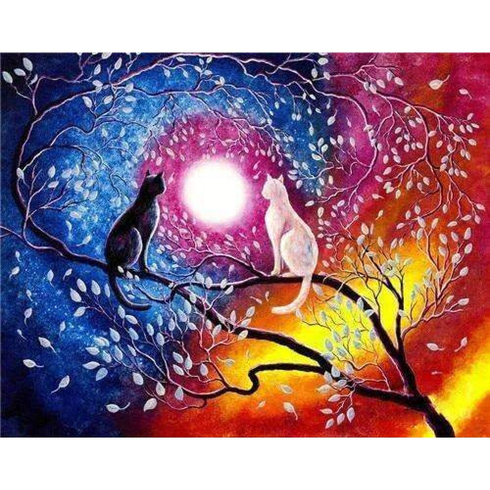 Twee Katten Romantisch Maanlicht Diamond Painting