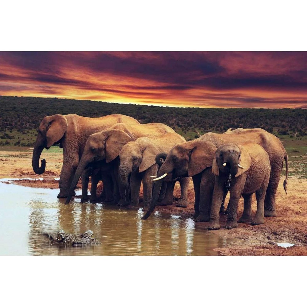 Familie Olifant bij de Plas Diamond Painting